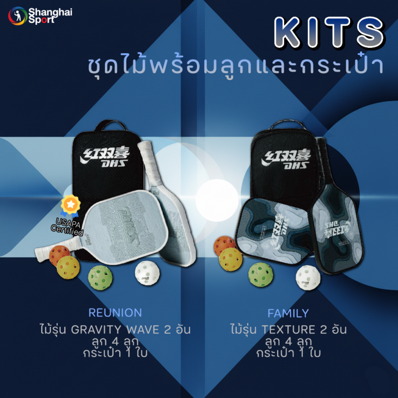 🌟หรือถ้าใครมาเป็นคู่ มาเป็นครอบครัว แนะนำเป็นแบบ Kits ได้ไม้ 2 อันและลูก 4 ลูก ตีได้เลยไม่ต้องคิดเยอะ มีให้เลือก 2 รุ่น ได้แก่