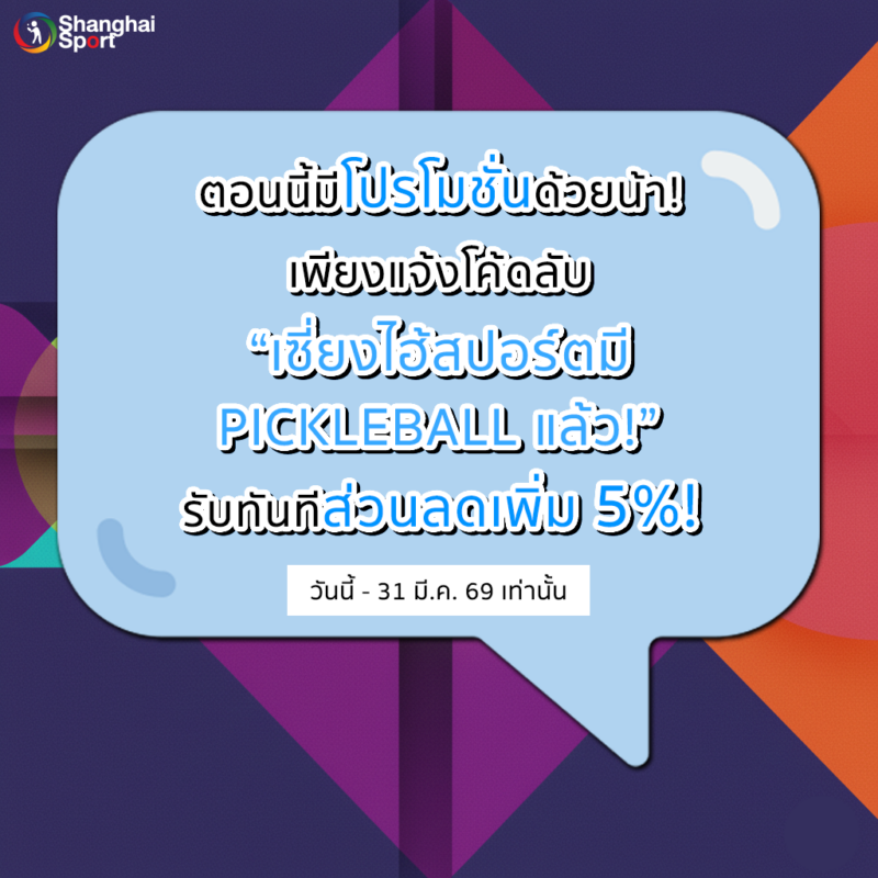 ⚡️อย่าลืมว่าช่วงนี้มีโปรโมชั่นอยู่ด้วยน้า เพียงแจ้งโค้ดลับ “เซี่ยงไฮ้สปอร์ตมี PICKLEBALL แล้ว!” รับส่วนลดเพิ่มทันที 5%! โปรนี้มีถึงสิ้นเดือนมีนาคม 69 เท่านั้น ห้ามพลาดเด็ดขาด!