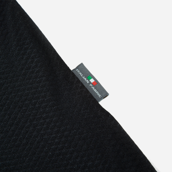 Italian fabric. It’s made of jacquard open mesh spandex. Sweat-wicking function keeps you dry while playing.